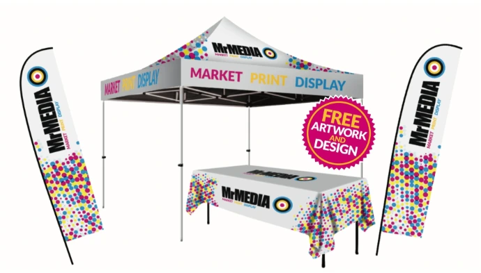 If your brand shows up outdoors, build a presence that performs: a tough tent, telescopic flags for visibility and table presentation that makes every interaction feel premium.