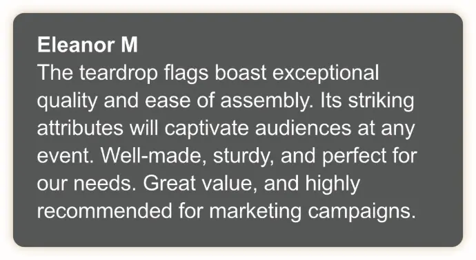 Make a Lasting Impression: Engage your audience and create a lasting impression with our striking teardrop flags that are sure to draw attention and generate buzz, while our excellent customer support ensures a smooth and stress-free experience.